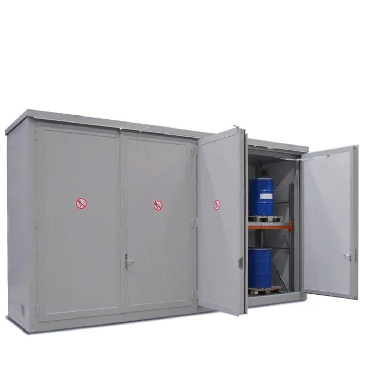 De verzinkt stalen binnen- en buitenwanden zorgen voor zeer hoge corrosiebestendige eigenschappen. Op de buitenwanden is een hoogwaardige plastisolcoating "Colorcoat HPS200 Ultra" in RAL 7038 met laagdikte van maar liefst 200 µm aangebracht, wat zorgt voor een duurzame afwerking. Verder is de binnenzijde voorzien van een helderwitte interieurcoating, welke de binnenzijde een frisse en lichte uitstraling geeft. Daarnaast is het dak speciaal geconstrueerd om te functioneren als drukontlasting. Ook het dak heeft een brandwerendheid van 90 minuten.